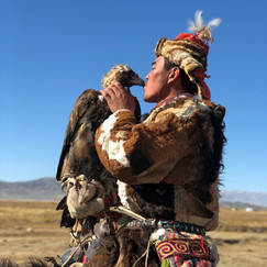 After the competition we ended our trip visiting one of the champion hunters, Serik Jenisbek, and his family. They welcomed us warmly into their ger, fed us a delicious goat stew and salted tea warmed by the stove heated with dried cow patties. We asked a ton of questions about everything. How do you train the eagles? Is it hard to let them go free after you have had them for years? Is there a Mongolian Tinder app? (This question is particularly relevant as he is widely known as “The Hot Guy of Eagle Hunting".
